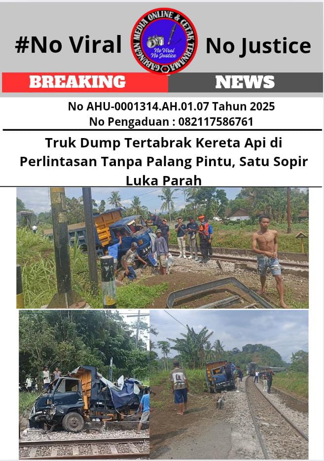 Eksposelensa.com – Truk Dump Tertabrak Kereta Api di Perlintasan Tanpa Palang Pintu, Satu Sopir Luka Parah