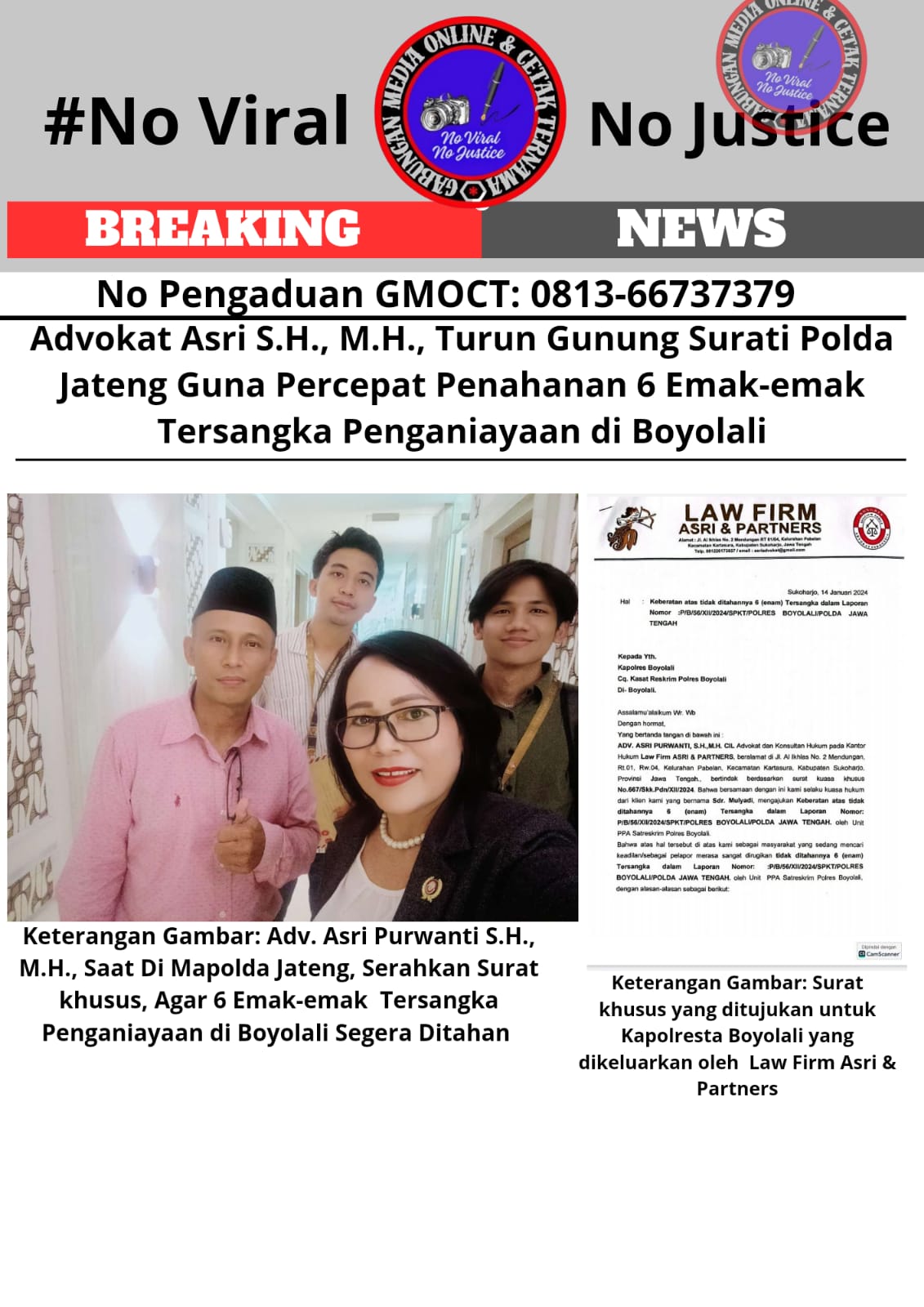 Advokat Asri S.H., M.H., Turun Gunung Surati Polda Jateng Guna Percepat Penahanan 6 Emak-emak Tersangka Penganiayaan di Boyolali