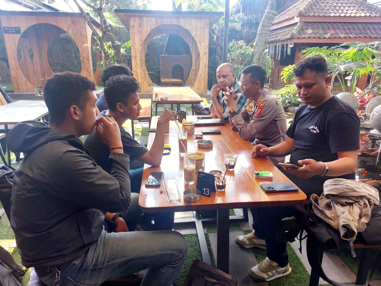 Eksposelensa.com – Perspolri, Polres Cimahi Polda Jabar Kapolsek Cimahi Selatan AKP Yudhi Hariyanto mempererat tali silaturahmi dengan Badan Eksekutif Mahasiswa (BEM) Unjani untuk menjaga keamanan dan ketertiban di wilayah hukumnya, berlangsung di Otutu Coffee and Kitchen Jl. Kerkof No.72, Leuwigajah, Kecamatan Cimahi Selatan., Kota Cimahi pada Jum’at (09/02/2024).