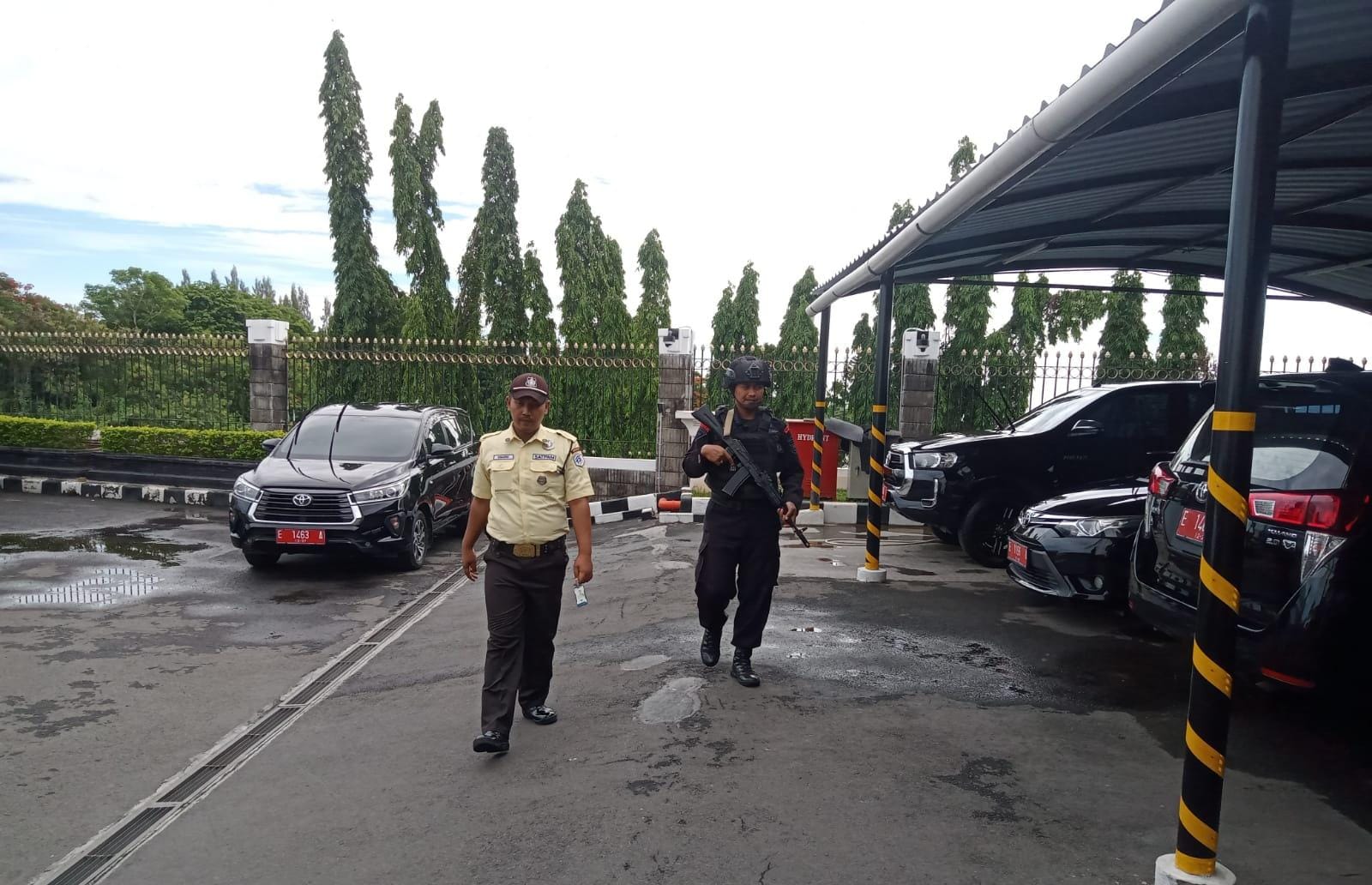 Eksposelensa.com | Anggota Kompi 4 Batalyon C Pelopor Satbrimob Polda Jabar IPDA Jalil Siregar melaksanakan patroli keliling gedung Bank Indonesia di Cirebon kota.