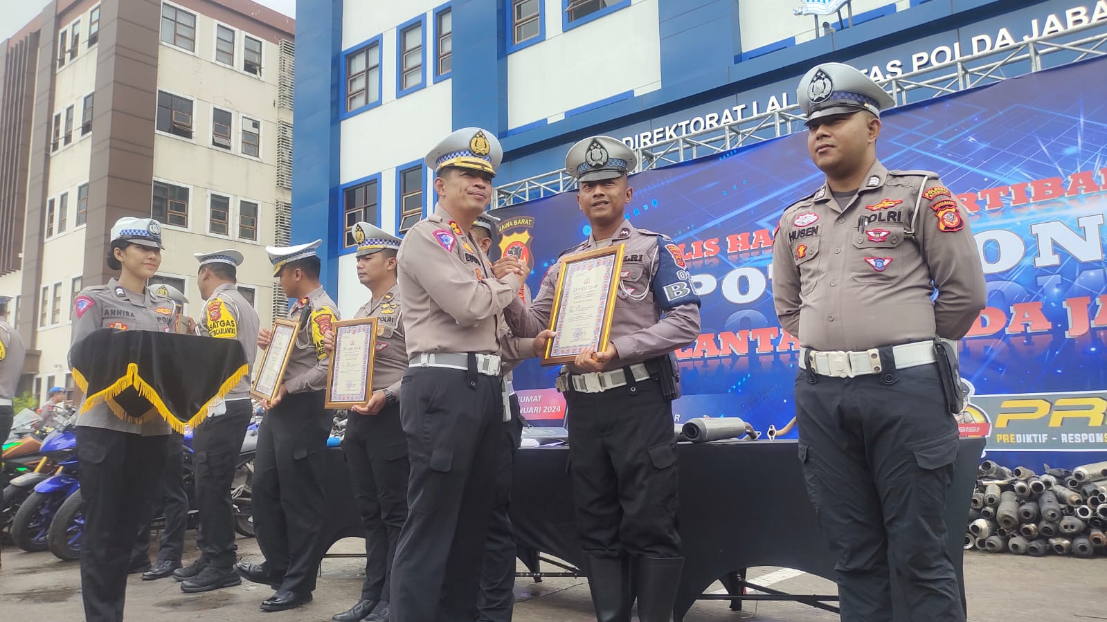 Dalam kegiatan tersebut, selain memaparkan permasalahan terkait knalpot brong dilaksanakan juga pemberian penghargaan pada anggota jajaran Ditlantas Polda Jabar yang dianggap berprestasi dalam tugasnya.