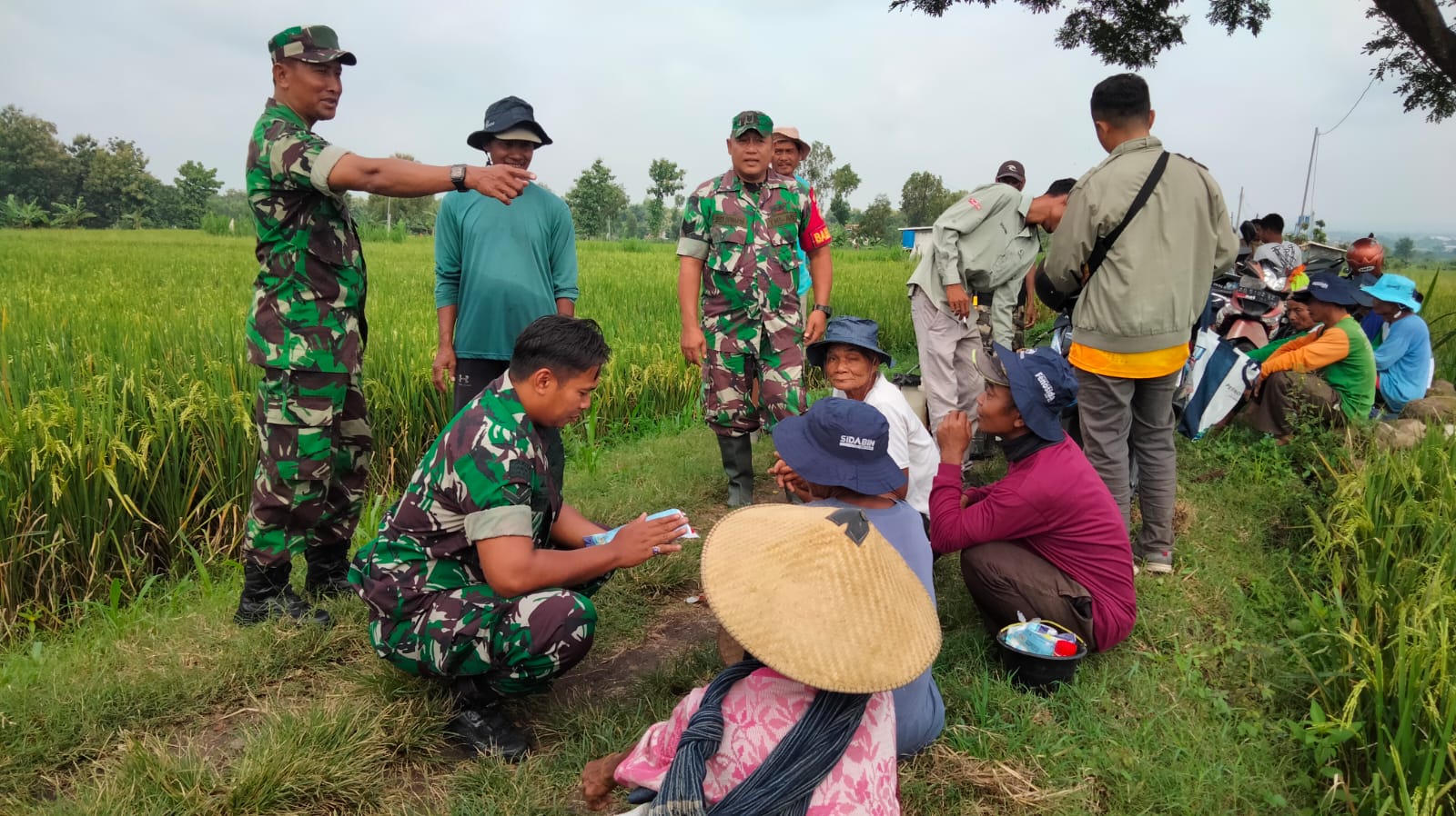 Di tengah hamparan sawah yang menghijau, Serma Budi dengan ramah berbincang dengan Pak Kasmo, seorang petani senior yang telah puluhan tahun mengolah lahan pertaniannya.  Mereka membahas berbagai hal, mulai dari kondisi tanaman padi yang sedang memasuki masa panen hingga kendala yang dihadapi para petani.  Pak Kasmo mengeluhkan serangan hama wereng yang cukup signifikan akhir-akhir ini, mengancam hasil panen mereka.