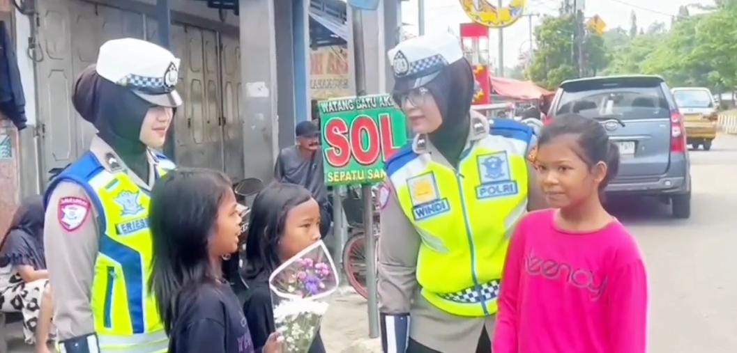 Dalam vidio yang beredar di sejumlah media sosial, aksi dua polwan yang membantu tiga bocah perempuan tersebut, diketahui di Jalan Raya Kadipaten, Kabupaten Majalengka.