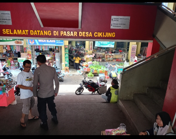 Berikan Rasa Aman Bagi Masyarakat, Bhabinkamtibmas Polsek Cikijing Laksanakan Patroli di Area Pasar