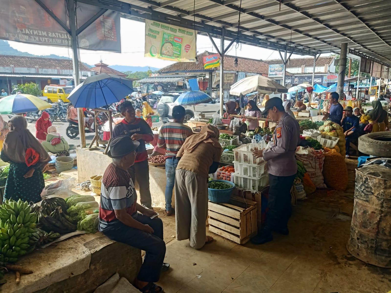 Dalam kegiatan sambang tersebut, Bripka Andryana Mutakin dan Brigadir Anggi Rexy berkeliling di area pasar tradisional, menyapa para pedagang dan warga yang sedang berbelanja. Mereka juga berdialog dengan para penjual sayuran untuk mendengarkan keluhan dan masukan terkait keamanan dan kenyamanan di pasar.