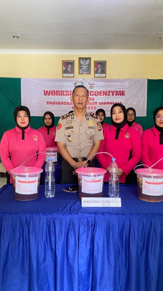 Ketua Bhayangkari Ranting Cikijing Ny. Neng Rusmawan menyampaikan bahwa kegiatan ini merupakan aksi nyata dalam mendukung gerakan pelestarian lingkungan sekaligus memberikan edukasi kepada masyarakat terkait manfaat eco enzim. Pembuatan eco enzim ini dilakukan sebagai upaya menciptakan solusi alami yang ramah lingkungan dan berkelanjutan. Proses pembuatan dilakukan dengan memanfaatkan limbah kulit buah dan sisa sayur-sayuran yang biasa terbuang di rumah tangga kemudian dicampurkan dengan gula merah dan air bersih sehingga dapat difermentasikan menjadi eco enzim yang bermanfaat bagi kebutuhan sehari-hari.