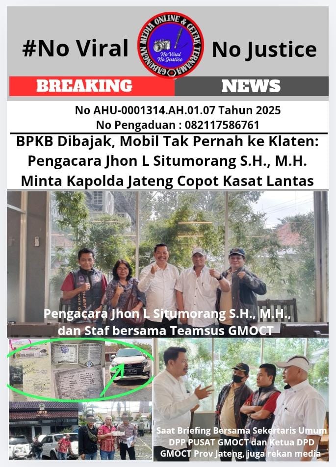 BPKB Dibajak, Mobil Tak Pernah ke Klaten: Pengacara John L Situmorang, S.H.,M.H., Minta Kapolda Jateng Copot Kasat Lantas