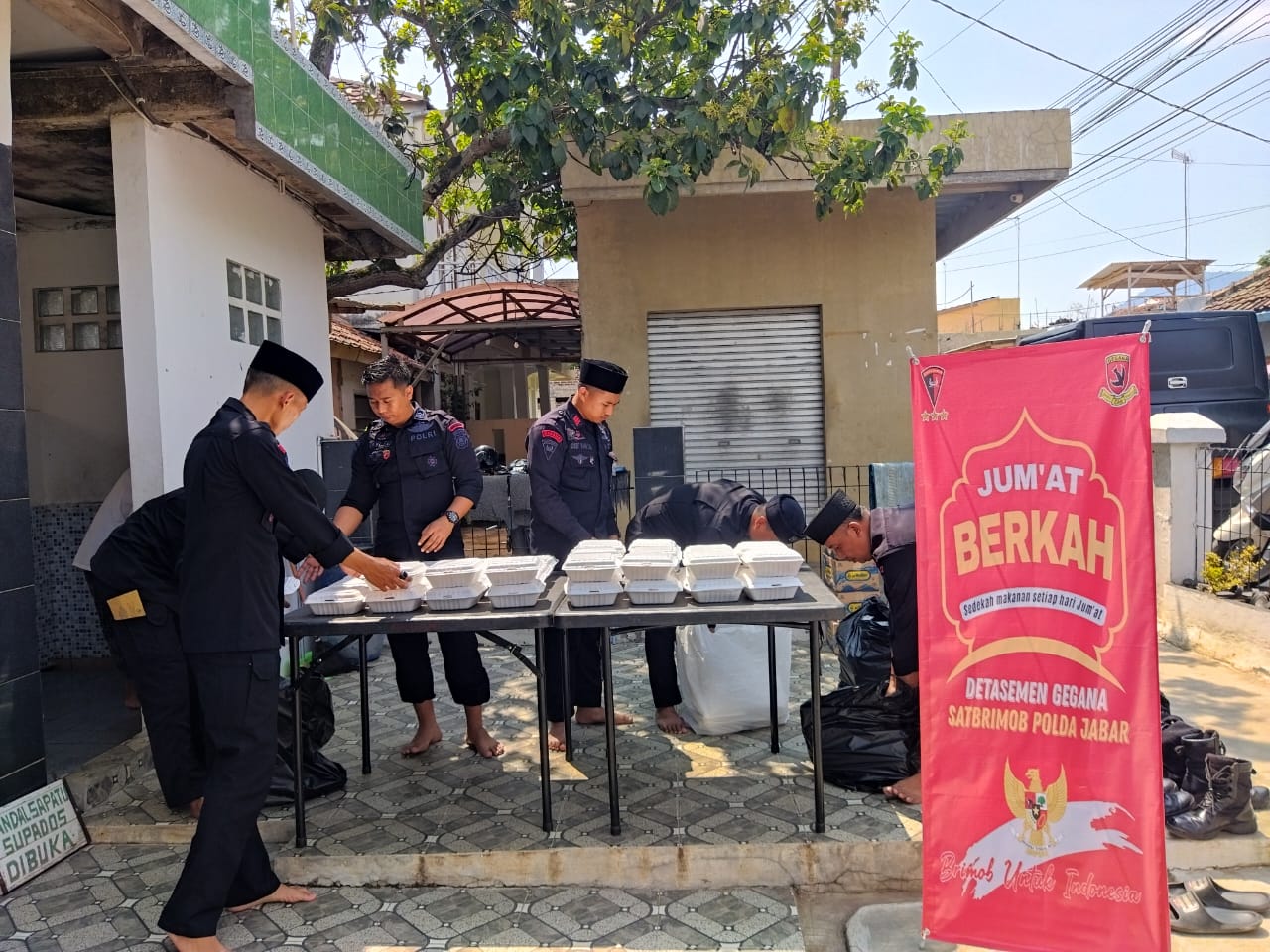 Brimob Peduli Masyrakat, Detasemen Gegana Satbrimob Polda Jawa Barat kali ini berbagi Jumat Berkah pada kegiatan Jumsih (Jumat bersih) dan Jumling ( Jumat Keliling)