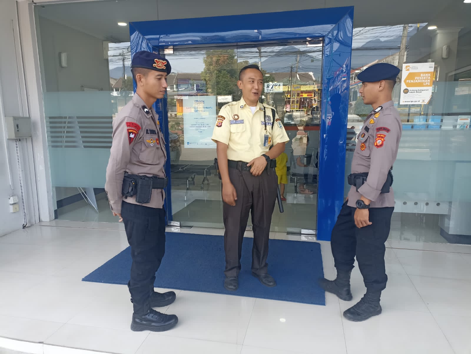 Brimob Polda Jabar Laksanakan Patroli Harkamtibmas Sambang Bank BRI Antisipasi Kejahatan