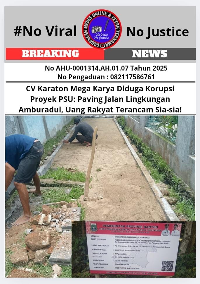 Proyek vital yang didanai APBD Provinsi Banten Tahun Anggaran 2025 ini, dengan nilai kontrak Rp 189.160.000,00 dan nomor kontrak 600/SPK.1157.UPPUPSU/D Perkim-3/2025, seharusnya menjadi prioritas untuk kesejahteraan rakyat, bukan ladang korupsi.