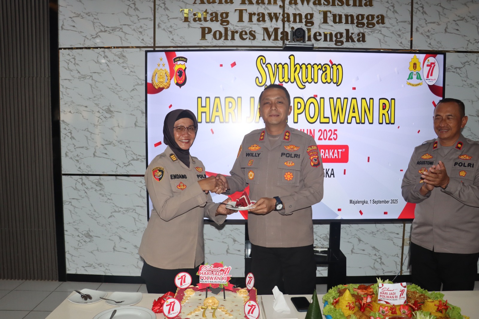 Eksposelensa.com – Majalengka, Polres Majalengka Polda Jabar menggelar syukuran dalam rangka Hari Ulang Tahun (HUT) Polwan ke-77 yang berlangsung di Aula Kanya Wasistha Tatag Trawang Tungga Polres Majalengka, Rabu (03/09/2025).