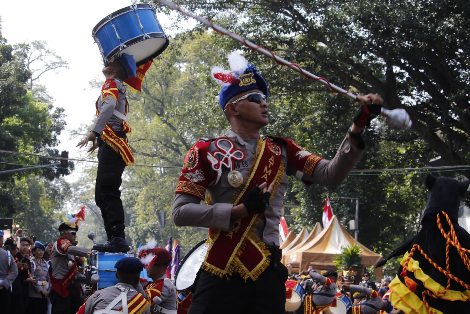 Selain upacara peringatan Polda Jabar juga menggelar pameran, panggung hiburan, defile pasukan serta beragam tarian tradisional Indonesia.