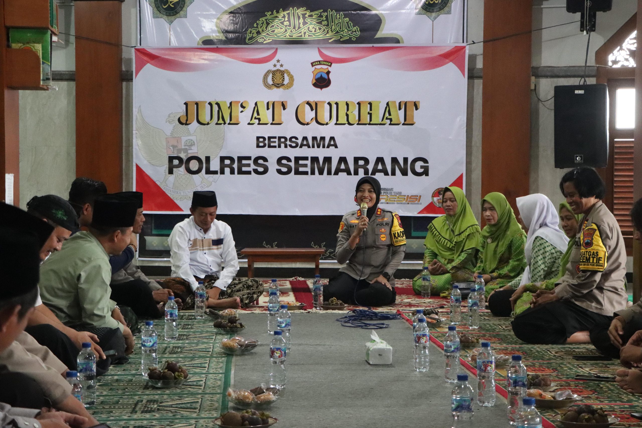 Menyambung apa yang disampaikan Kyai Abdul Sahid, AKBP Ratna menyampaikan kegiatan Jumat curhat bertujuan mendengar masukan, saran, keluh dan kesah warga terkait situasi Kamtibmas atau tugas Kepolisian di lingkungan Polres Semarang. Hal ini disampaikan langsung Kapolres AKBP Ratna dalam sambutannya di hadapan para warga.