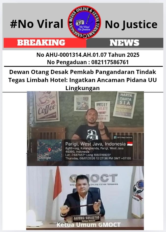 Eksposelensa.com – Pangandaran.(GMOCT) – Permasalahan limbah industri perhotelan di Kabupaten Pangandaran kembali menjadi sorotan serius. Dewan Otang, politisi Partai Kebangkitan Bangsa (PKB), menegaskan bahwa pengelolaan limbah hotel dan restoran di daerah wisata tersebut masih jauh dari standar yang diatur dalam peraturan perundang-undangan.