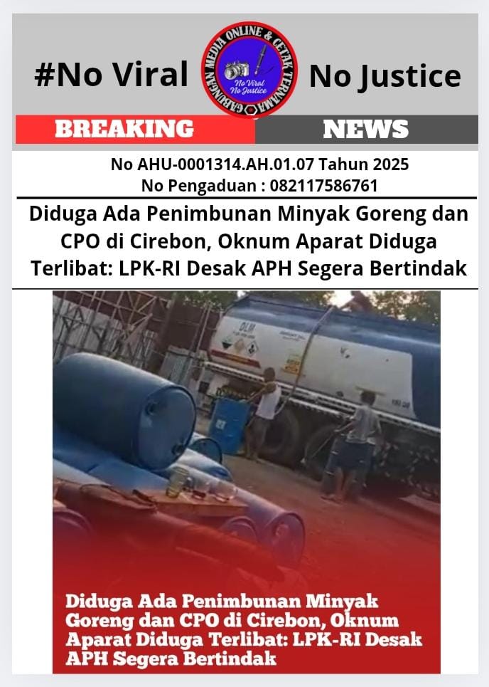 Diduga Ada Penimbunan Minyak Goreng dan CPO di Cirebon, Oknum Aparat Diduga Terlibat: LPK-RI Desak APH Segera Bertindak