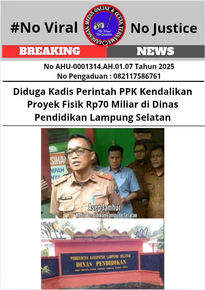 Eksposelensa.com – Lamsel – Dugaan pengaturan proyek fisik di Dinas Pendidikan Lampung Selatan senilai Rp70 miliar untuk tahun anggaran 2024 mencuat ke permukaan. Sri Widianto, Kepala Bidang (Sarpras) dan Pejabat Pembuat Komitmen (PPK), diduga mengatur seluruh kegiatan proyek pembangunan gedung sekolah baru dan renovasi. Anggaran tersebut bersumber dari APBD dan APBN.