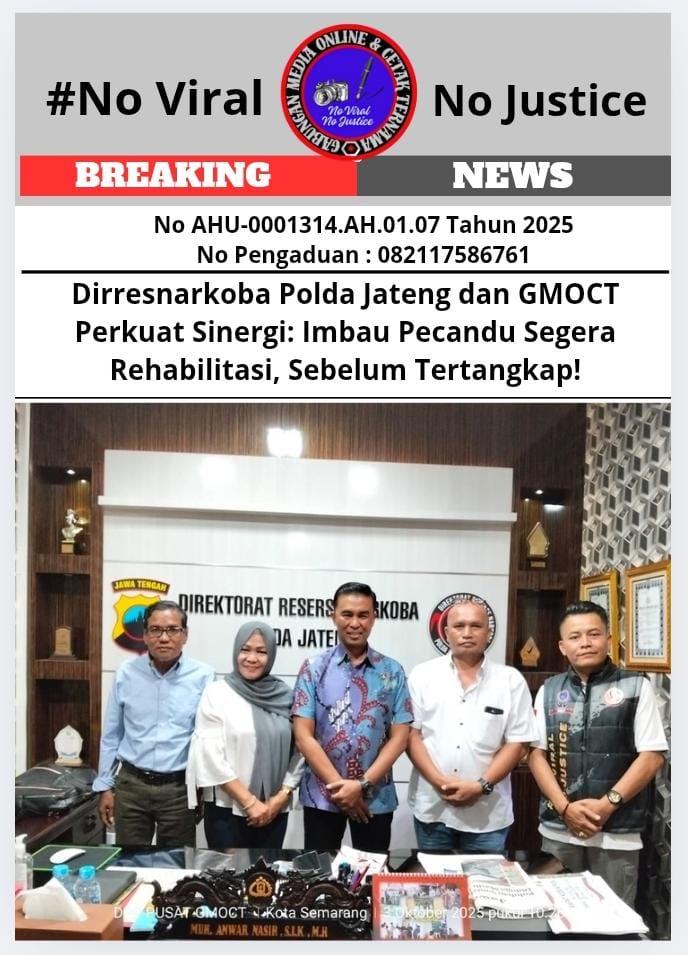 Dirresnarkoba Polda Jateng dan GMOCT Perkuat Sinergi: Imbau Pecandu Segera Rehabilitasi, Sebelum Tertangkap!