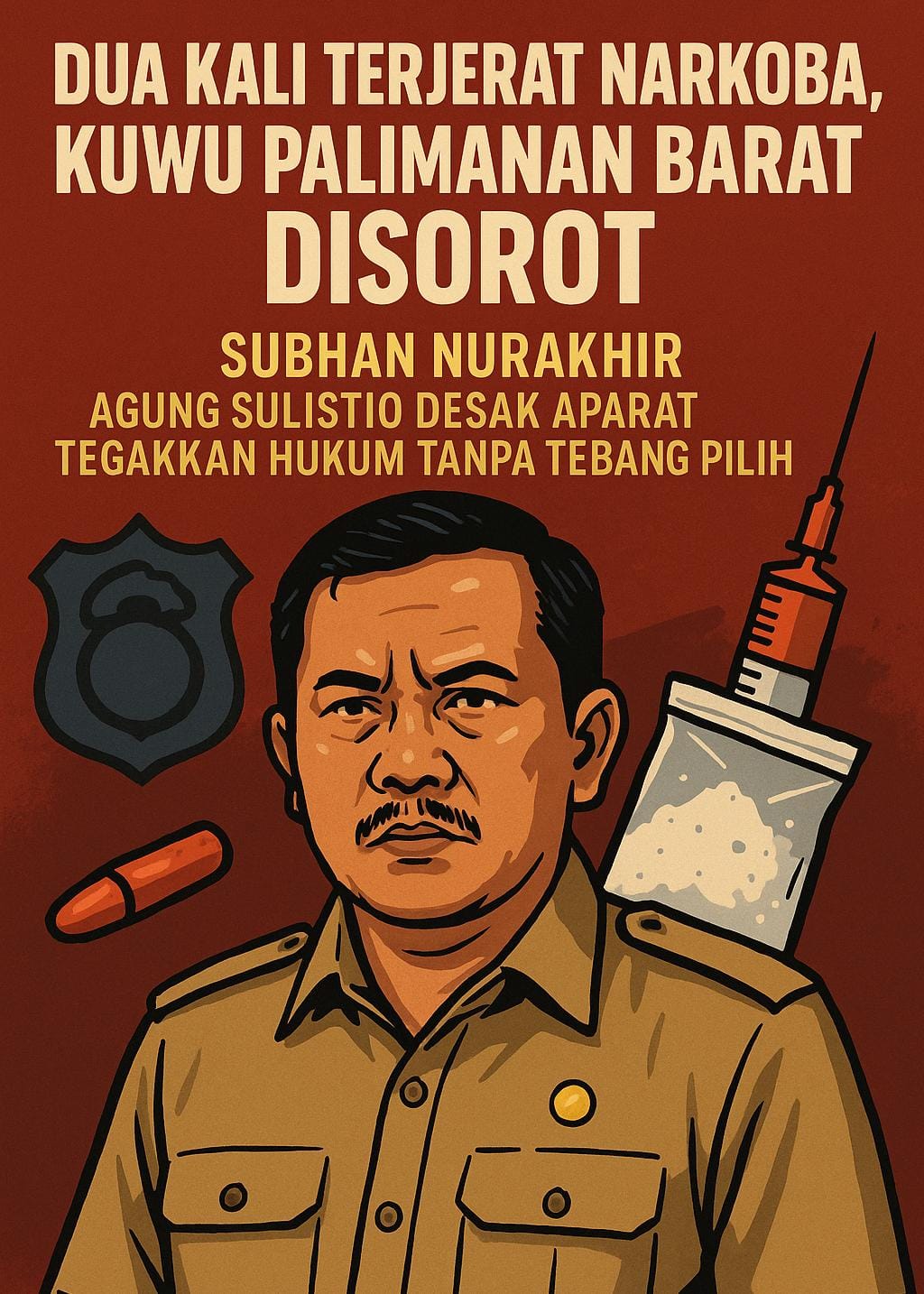 Eksposelensa.com – Cirebon. Pada hari jumat tgl 17 Oktober 2025.Ketua Umum Gabungan Media Online Cetak Ternama (GMOCT), Agung Sulistio, angkat suara terkait dugaan keterlibatan Kuwu Palimanan Barat, Subhan Nurakhir, dalam dua kasus narkoba. Sebagai Pemimpin Redaksi Sahabat Bhayangkara Indonesia (SBI) dan Ketua DPP II LPK-RI, Agung menegaskan bahwa persoalan ini tidak boleh dibiarkan berlalu tanpa proses hukum yang jelas. Ia menyatakan, publik wajar mempertanyakan integritas aparat penegak hukum jika seorang kepala desa dapat lolos dari jerat pidana setelah dua kali diamankan pihak kepolisian. Undang-Undang Nomor 35 Tahun 2009 tentang Narkotika mengatur tegas sanksi pidana dan rehabilitasi bagi penyalahguna maupun pihak yang terlibat, sehingga tidak boleh ada pengecualian bagi pejabat publik.