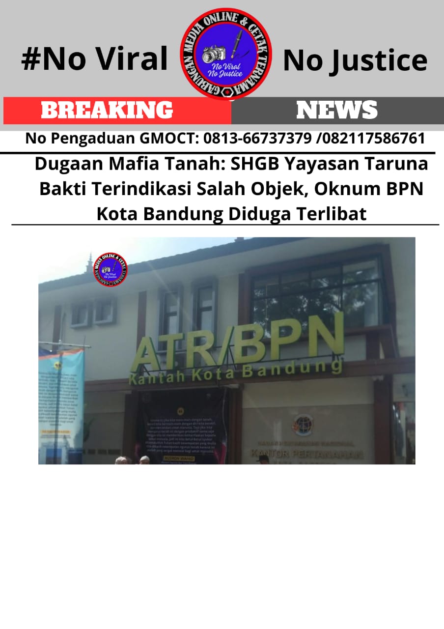 GMOCT telah mengirimkan pertanyaan kepada Kepala Kantah/BPN Kota Bandung terkait dugaan ini, termasuk mengenai tindakan yang akan diambil terkait dugaan mafia tanah dan pengembalian SHGB sesuai riwayat sertifikat asalnya. Hingga berita ini diterbitkan, belum ada tanggapan resmi dari pihak BPN Kota Bandung. Informasi ini dipublikasikan sesuai dengan kaidah jurnalistik dan Undang-Undang Pers setelah menunggu lebih dari satu minggu tanpa adanya klarifikasi.
