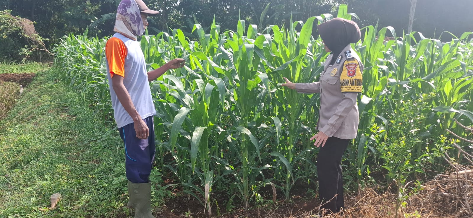 Dukung Ketahanan Pangan Lokal, Bhabinkamtibmas Sukahaji Sambangi Petani Jagung di Desa Jayi