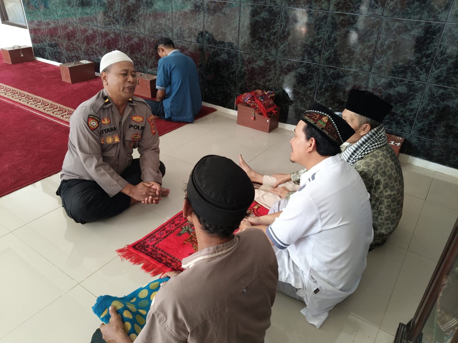 Dalam kegiatan tersebut, tampak Panit Samapta Polsek Jatiwangi IPDA Riyana bersama Kanit Provost AIPDA Dadang Sukendar, berdiskusi dan bersilaturahmi dengan tokoh agama serta jemaah masjid di Desa Sutawangi.