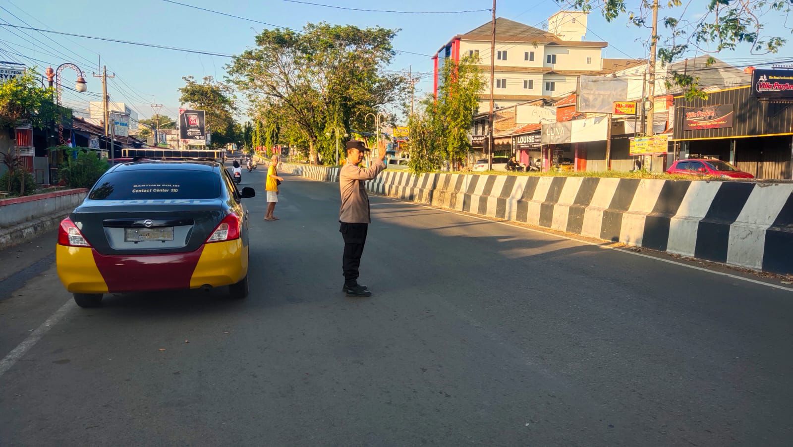Eksposelensa.com – Majalengka – Personel Polsek Kadipaten Polres Majalengka Polda Jabar, Aipda Cecep Basuki Rahmat, S.H., dan Brigadir Muhamad Agung Gumelar, S.H., melaksanakan kegiatan pengaturan lalu lintas (gatur pagi) di depan Pasar Kadipaten, Selasa (10/06). Kegiatan ini dilakukan sebagai upaya nyata untuk menciptakan situasi Kamtibcarlantas yang aman, tertib, dan lancar di wilayah hukum Polsek Kadipaten, khususnya pada jam-jam sibuk saat aktivitas pasar meningkat.