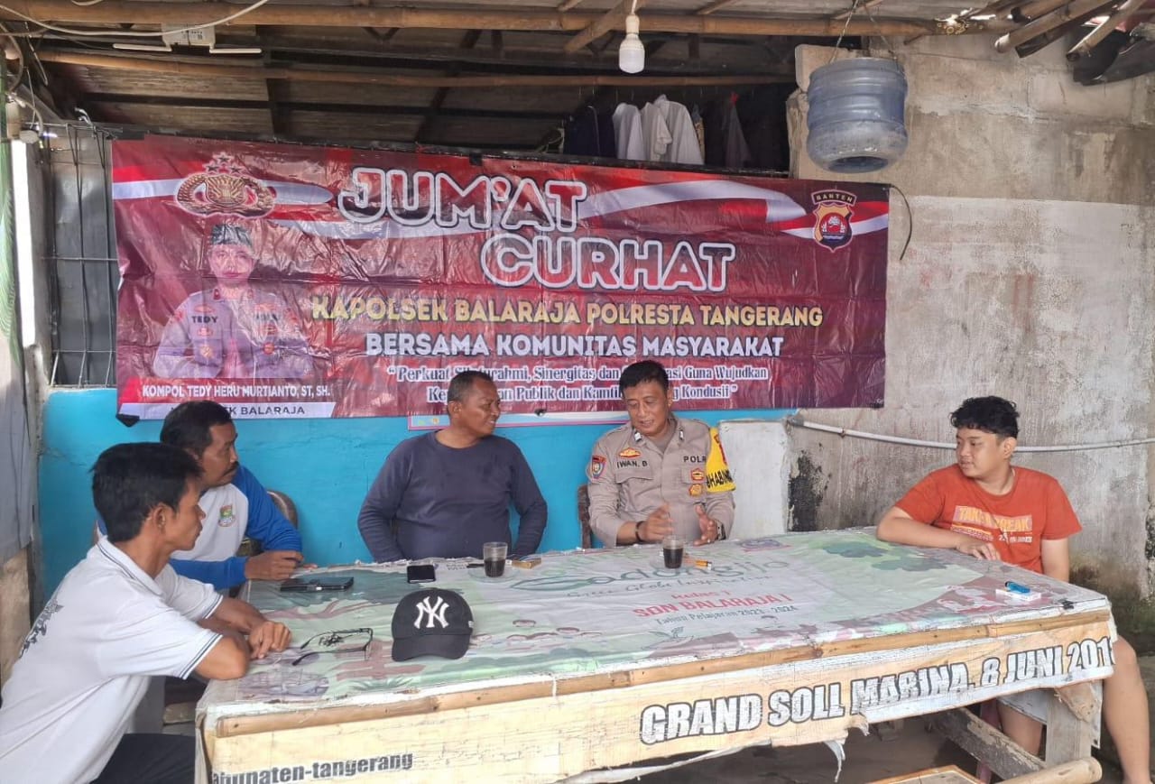 Dalam kegiatan Jumat Curhat di Kelurahan Balaraja Kapolsek Balaraja Kompol Tedy Heru Murtianto ST SH diwakili oleh Bhabinkamtibmas Polsek Balaraja Aiptu Iwan Budiman berinteraksi langsung dengan Bpk Anim dan Rosidi Warga Binaan di Kelurahan Balaraja dengan Tujuan dari kegiatan ini adalah untuk mengenali lebih dekat permasalahan yang dihadapi masyarakat dan memberikan solusi atau saran yang dapat membantu.