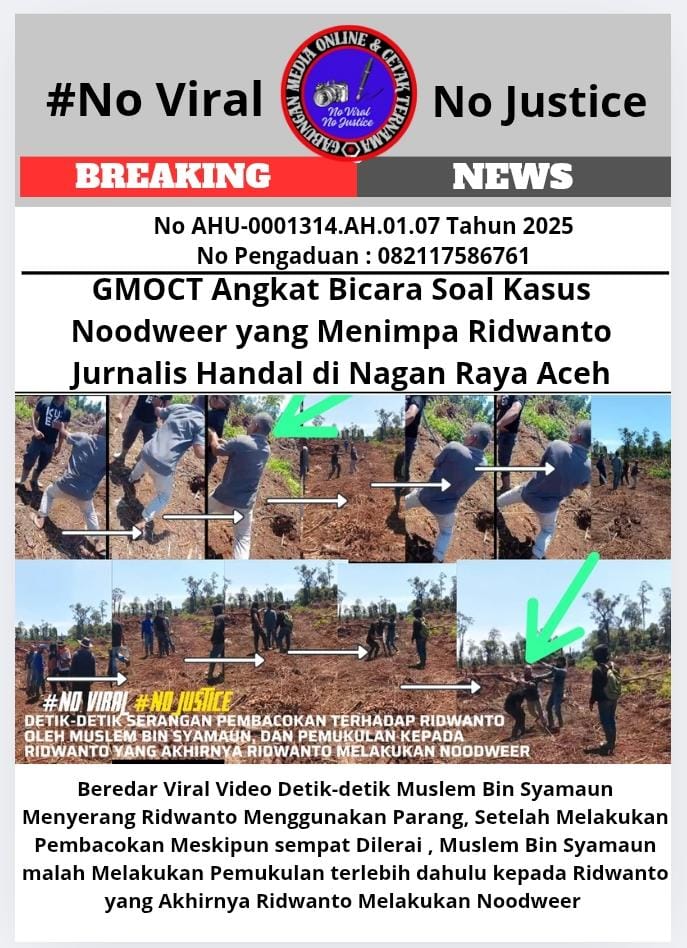 GMOCT Angkat Bicara Soal Kasus Noodweer yang Menimpa Ridwanto Jurnalis Handal di Nagan Raya Aceh