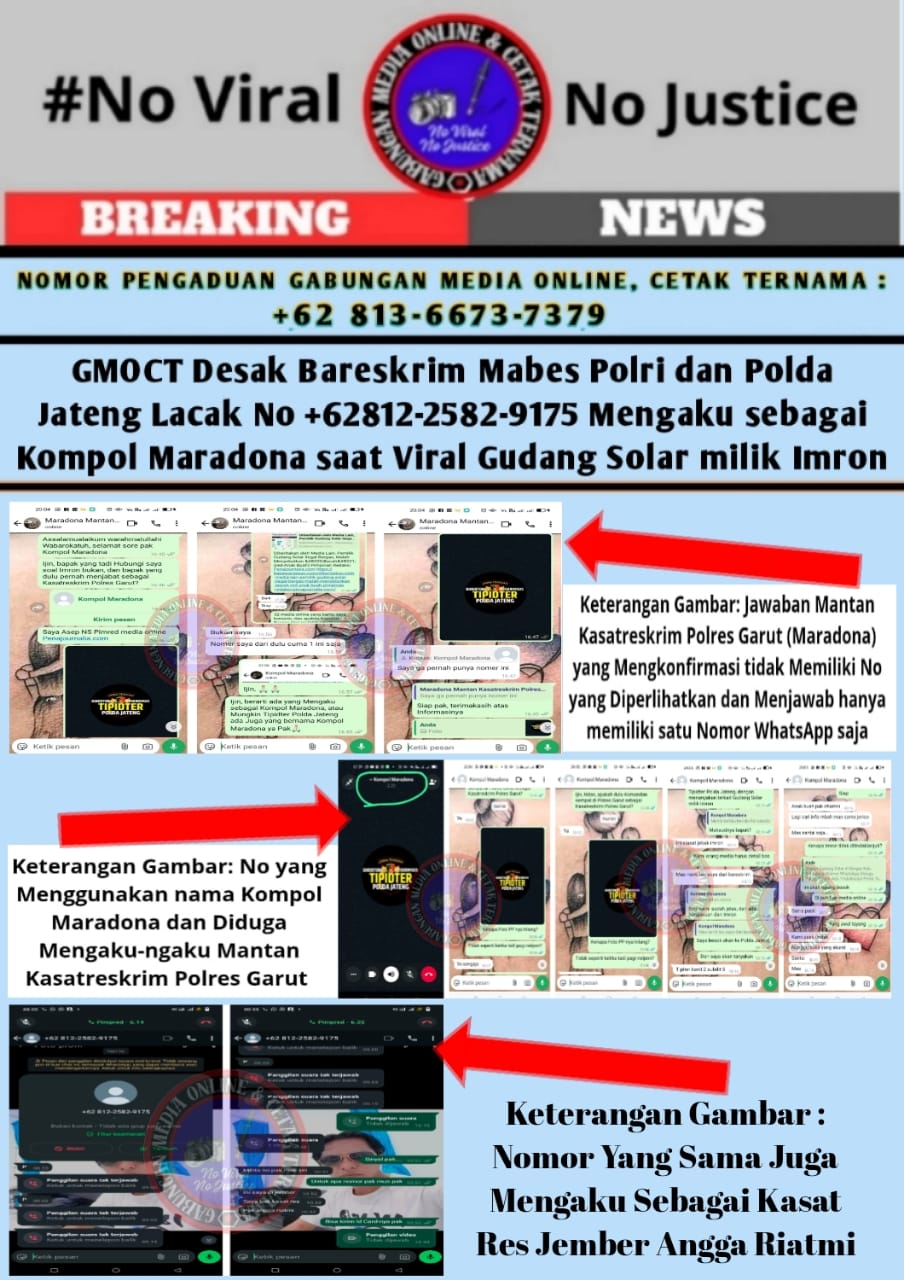 GMOCT Desak Bareskrim Mabes Polri dan Polda Jateng Lacak No +62812-2582-9175 Diduga Kuat Mengaku sebagai Kompol Maradona dan Kasat Res Jember Angga Riatmi saat Viral Gudang Solar milik Imron