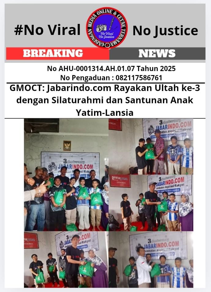 Ketua Umum GMOCT Agung Sulistio memberikan apresiasi atas perayaan ulang tahun ke-3 Jabarindo.com. “Kami sangat bangga dengan perkembangan Jabarindo.com yang selama tiga tahun telah menunjukkan kontribusi signifikan dalam menyajikan informasi yang akurat dan relevan bagi masyarakat Jawa Barat. Perayaan yang diisi dengan kegiatan sosial ini juga menunjukkan komitmen media bukan hanya sebagai penyampai berita, tetapi juga sebagai bagian dari masyarakat yang peduli pada sesama,” ucapnya.