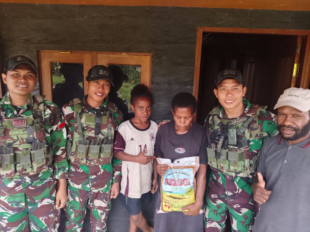 Eksposelensa.com – Jayapura – TNI Selalu hadir di tengah tengah masyarakat, melalui Satgas Yonif 641/Bru Pos Muaranawa melaksanakan kegiatan Anjangsana Dan berbagi sembako ke Kampung Muaranawa Distrik Airu, Kabupaten Jayapura, Provinsi Papua, (01/04/2025).
