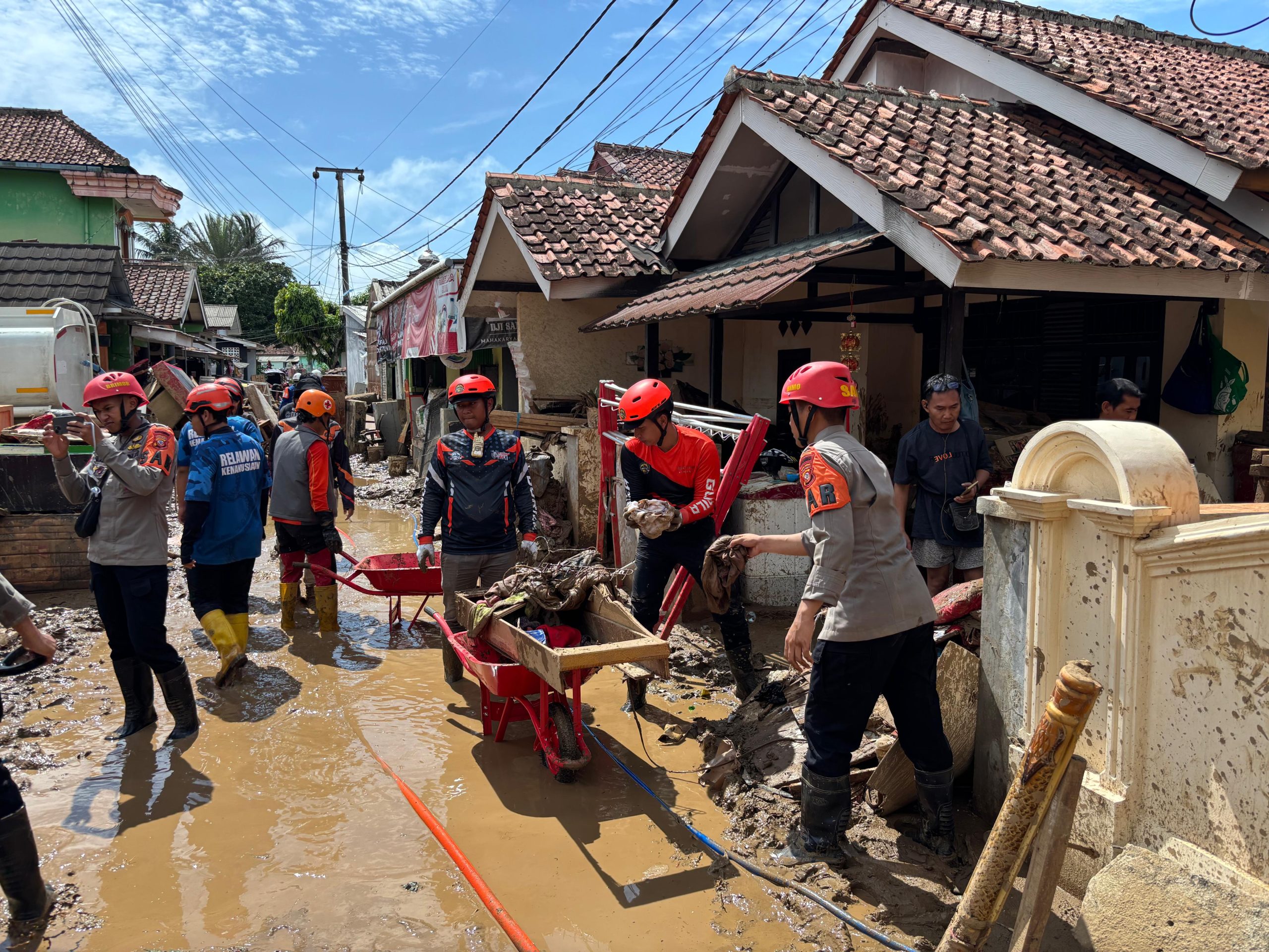 Kegiatan berlanjut pada pukul 14.29 WIB, di mana personel Satbrimob Polda Jabar bersama tim gabungan fokus melakukan pembersihan serta pengangkatan lumpur di rumah-rumah warga yang terdampak banjir bandang. Hingga saat ini, tercatat sebanyak 612 rumah warga terdampak akibat bencana tersebut.