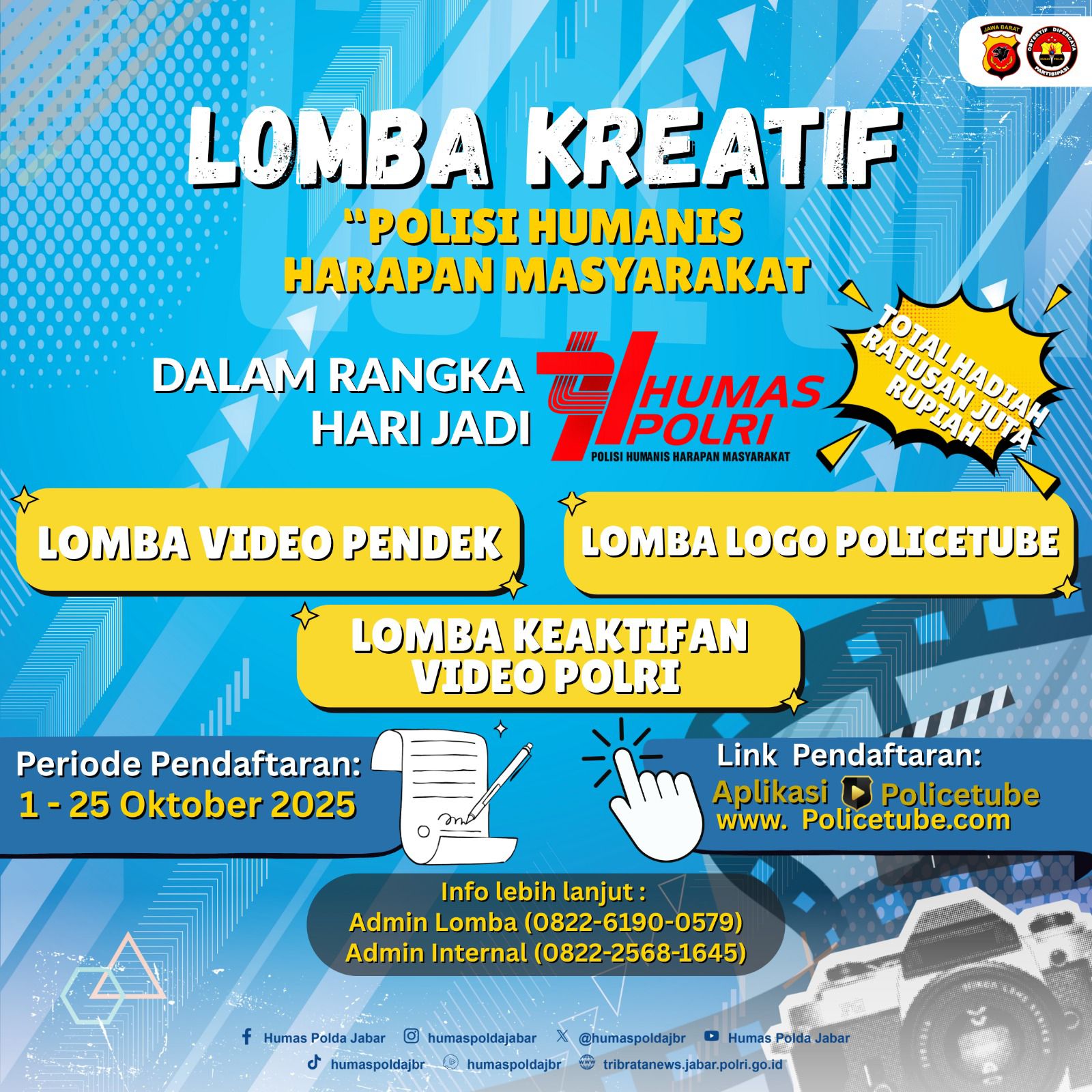 Kabid Humas Polda Jawa Barat, Kombes Pol. Hendra Rochmawan, S.I.K., M.H., menjelaskan bahwa lomba ini bukan hanya ajang kompetisi, tetapi juga wadah kreativitas dan kolaborasi antara Polri dan masyarakat. “Melalui lomba kreatif ini, kami ingin membuka ruang bagi masyarakat untuk berkreasi, menyampaikan pesan positif, serta menunjukkan bagaimana Polri hadir sebagai sahabat masyarakat yang selalu siap melayani dan melindungi,” ujarnya, Senin (6/10/2025)