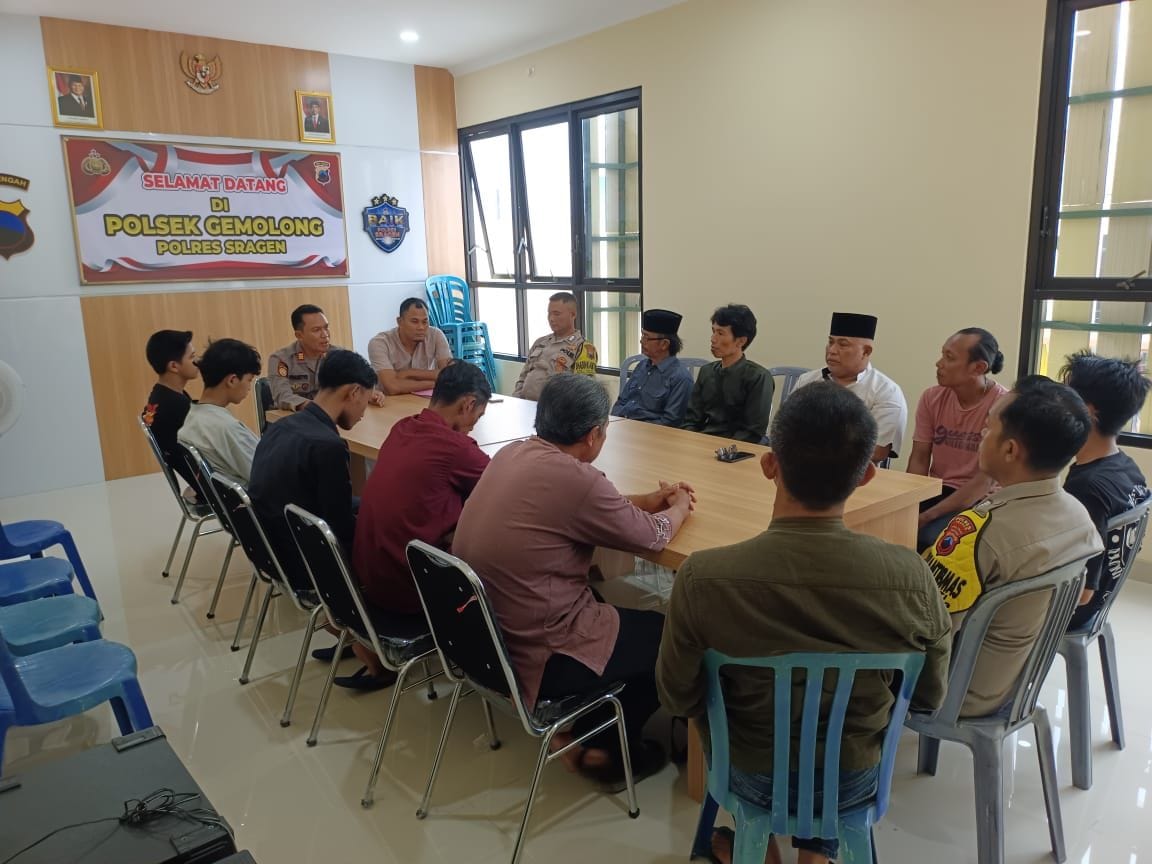 Pihak kepolisian, korban, serta keluarga pelaku melakukan mediasi di Polsek Gemolong.