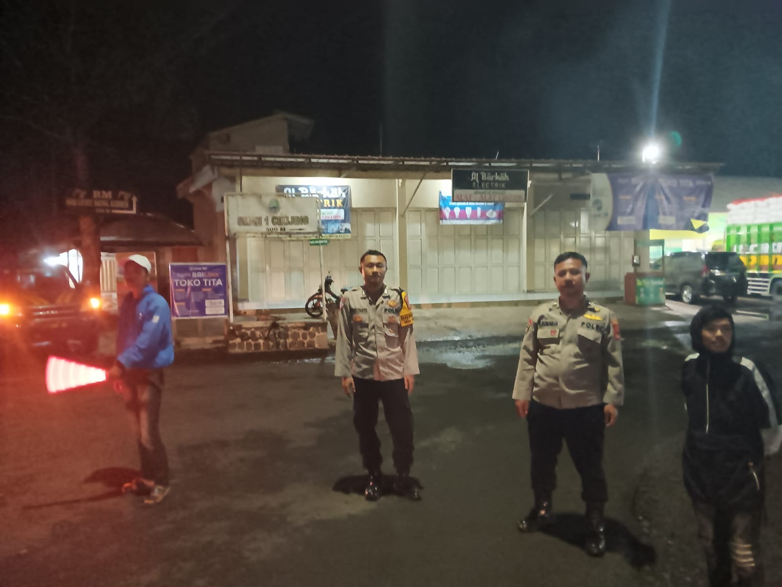 Jaga Harkamtibmas, Personil Polsek Cikijing Laksanakan Patroli Malam dan Sambangi Pak Ogah