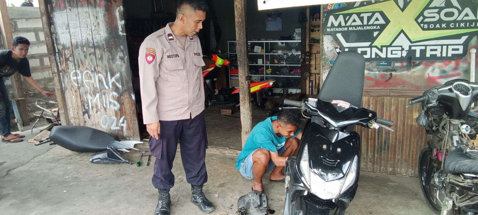 Eksposelensa.com – Majalengka – Dalam rangka memantau perkembangan situasi kamtibmas kewilayahan, Polsek Cikijing Polres Majalengka Polda Jabar melalui Ka SPKT II Aipda Mustopa melakukan patroli dan sambang kewilayahan, seperti terlihat saat sambang ke Bengkel yang berada di Blok Cibodas Desa Cidulang, Kecamatan Cikijing, Kabupaten Majalengka, Minggu (14/09/2025).