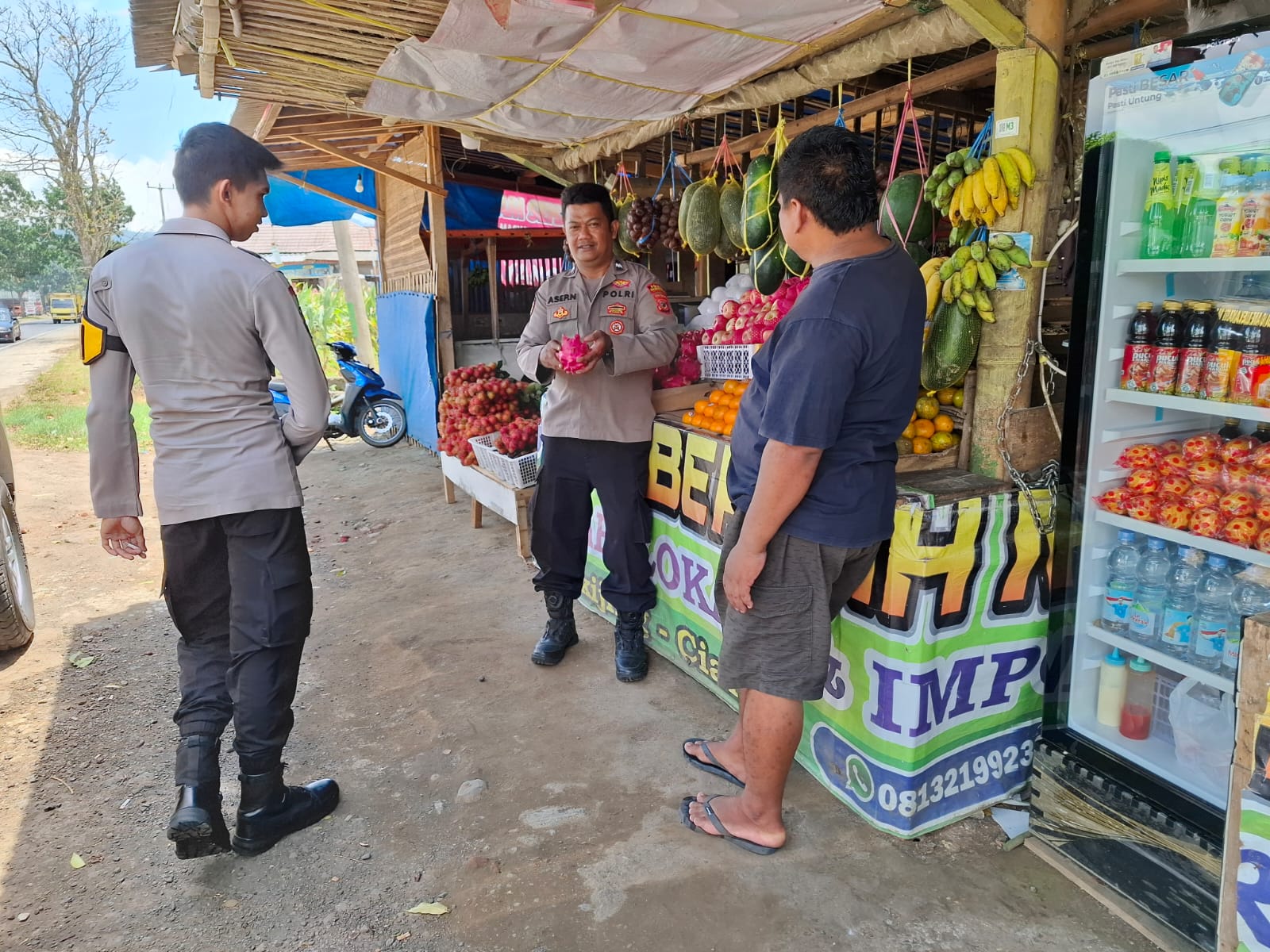 Dalam kunjungan tersebut, petugas tidak hanya berinteraksi dengan para pedagang buah tetapi juga bertukar informasi tentang perkembangan di sekitar pasar. Mereka memberikan imbauan dan pesan-pesan terkait situasi keamanan dan ketertiban masyarakat (kamtibmas).
