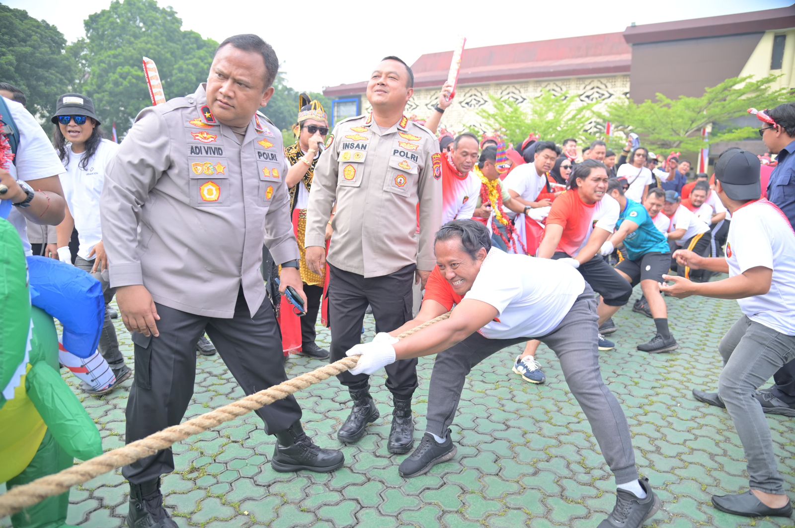 “Kita lihat di belakang, ada tarik tambang yang diikuti oleh Putra dan Putri dari masing-masing Satuan Kerjadi Polda Jabar. Demikian juga ada lomba bakiak di sebelahnya.” ujarnya