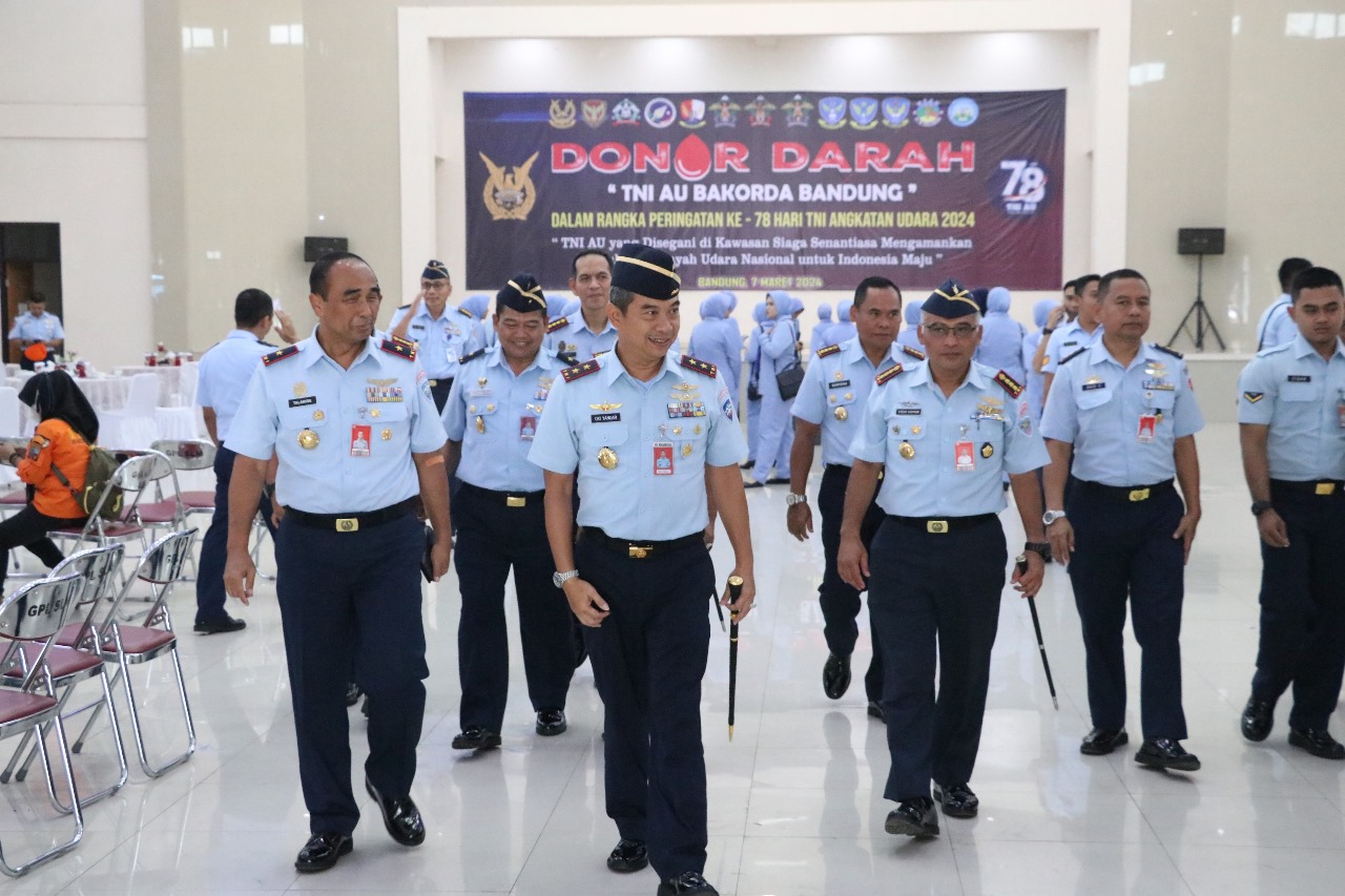 Menjelang peringatan ke-78 hari TNI Angkatan Udara tahun 2024, TNI AU Bakorda Bandung menggelar kegiatan bakti sosial donor darah bekerja sama dengan Palang Merah Indonesia Kabupaten Banjar, bertempat di Gedung Andromeda Lanud Sulaiman, Bandung. Kamis (07/03/24).