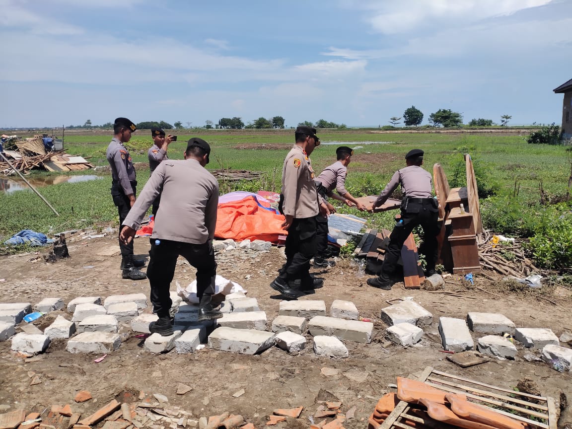 Eksposelensa.com – Hari ke-3 pasca bencana angin puting beliung di wilayah Kecamatan Juntinyuat, anggota Polsek Juntinyuat jajaran Polres Indramayu Polda Jabar bersama anggota Dalmas Samapta Polres Indramayu terus memberikan pertolongan kepada masyarakat korban serta melakukan pembersihan puing-puing kerusakan pasca bencana. Sabtu (6/1/2024)
