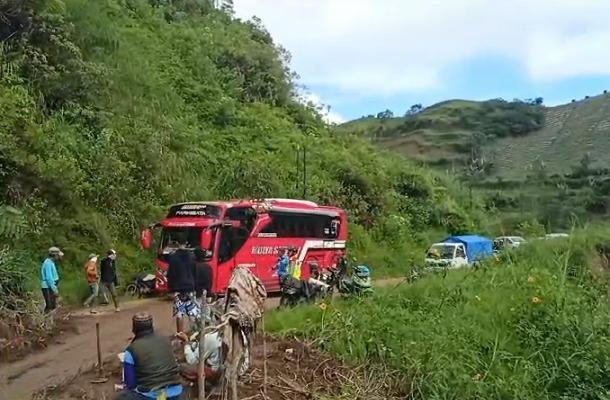 Akibat tanah longsor tersebut mengakibatkan seluruh badan jalan raya tertutup oleh material longsor. Longsor terjadi diduga karena intensitas curah hujan yang cukup tinggi derah sehingga mengakibatkan tanah di tebing jalan mengalami retak lalu turun longsor yang cukup hebat.