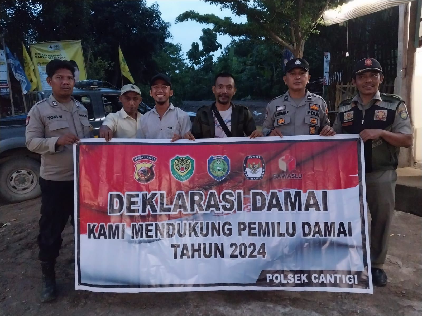 Eksposelensa.com | Polsek Cantigi jajaran Polres Indramayu Polda Jabar melaksanakan kegiatan Cooling System dalam bentuk Deklarasi Damai Pemilu 2024 di Desa Lamarantarung, Kecamatan Cantigi, Kabupaten Indramayu. Rabu (31/1/2024)