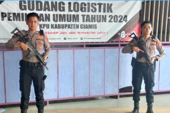 Eksposelensa.com | Polres Ciamis Polda Jabar melaksanakan kegiatan pengamanan Gedung logistik KPU Kab. Ciamis. Kegiatan itu bertempat di Gudang logistik KPU Kabupaten Ciamis (Cisadap), Jawa Barat, Rabu (3/1/2024).
