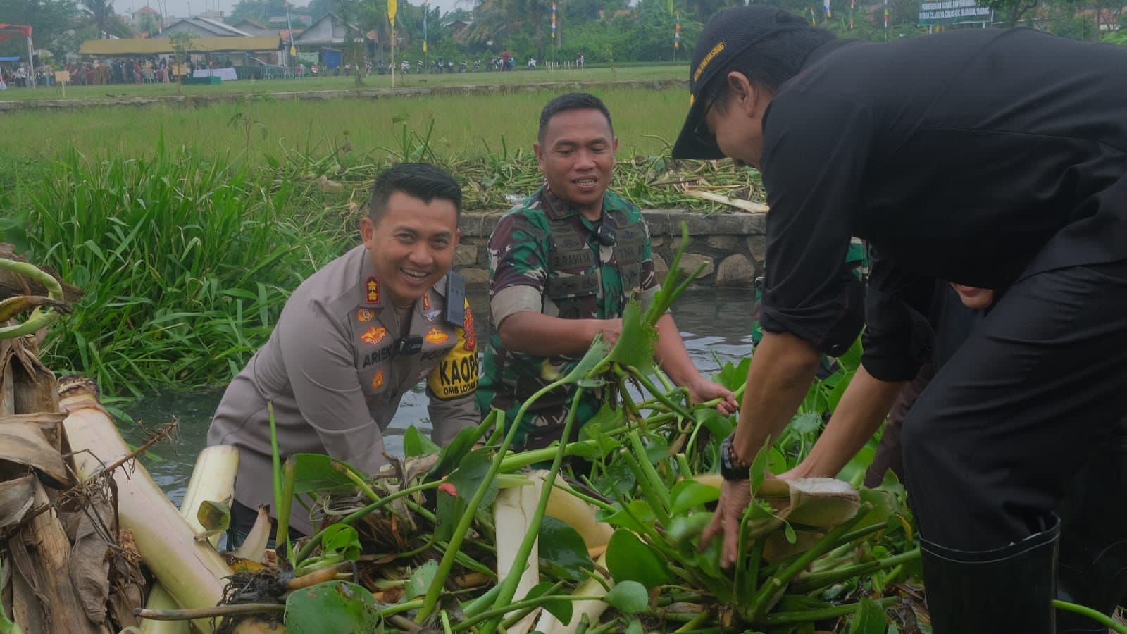 Eksposelensa.com | Dalam rangka melaksanakan giat karya bakti, Kapolres Subang Polda Jabar, AKBP Ariek Indra Sentanu rela terjun ke sungai guna membersihkan tumbuhan liar eceng gondok yang berlokasi di sungai wilayah Desa Cilamaya Girang Kecamatan Blanakan Kabupaten Subang, Senin, 15 Januari, 2024.