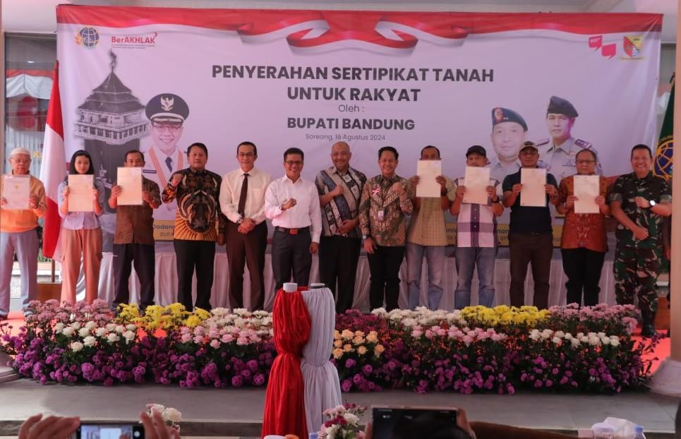 Penyerahan sertipikat tanah itu merupakan bagian dari pelayanan Kepala Kantor Pertanahan Kabupaten Bandung Rahmat. Penyerahan sertipikat tanah itu turut disaksikan Kepala Kantor Wilayah BPN Provinsi Jawa Barat Yuniar Hikmat Ginanjar dan jajaran Forkopimda Kabupaten Bandung, Organisasi Perangkat Daerah Kabupaten Bandung, warga masyarakat penerima sertipikat tanah dan pihak lainnya.