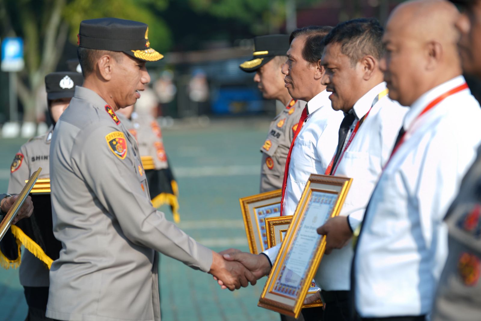 Eksposelensa.com | Kapolda Jabar Irjen Pol. Drs. Akhmad Wiyagus S.I.K., M.Si., M.M. memimpin Apel Gabungan dalam rangka pemberian penghargaan kepada personel Polda Jabar yang berprestasi, bertempat di Mapolda Jabar, Senin (30/9/2024)