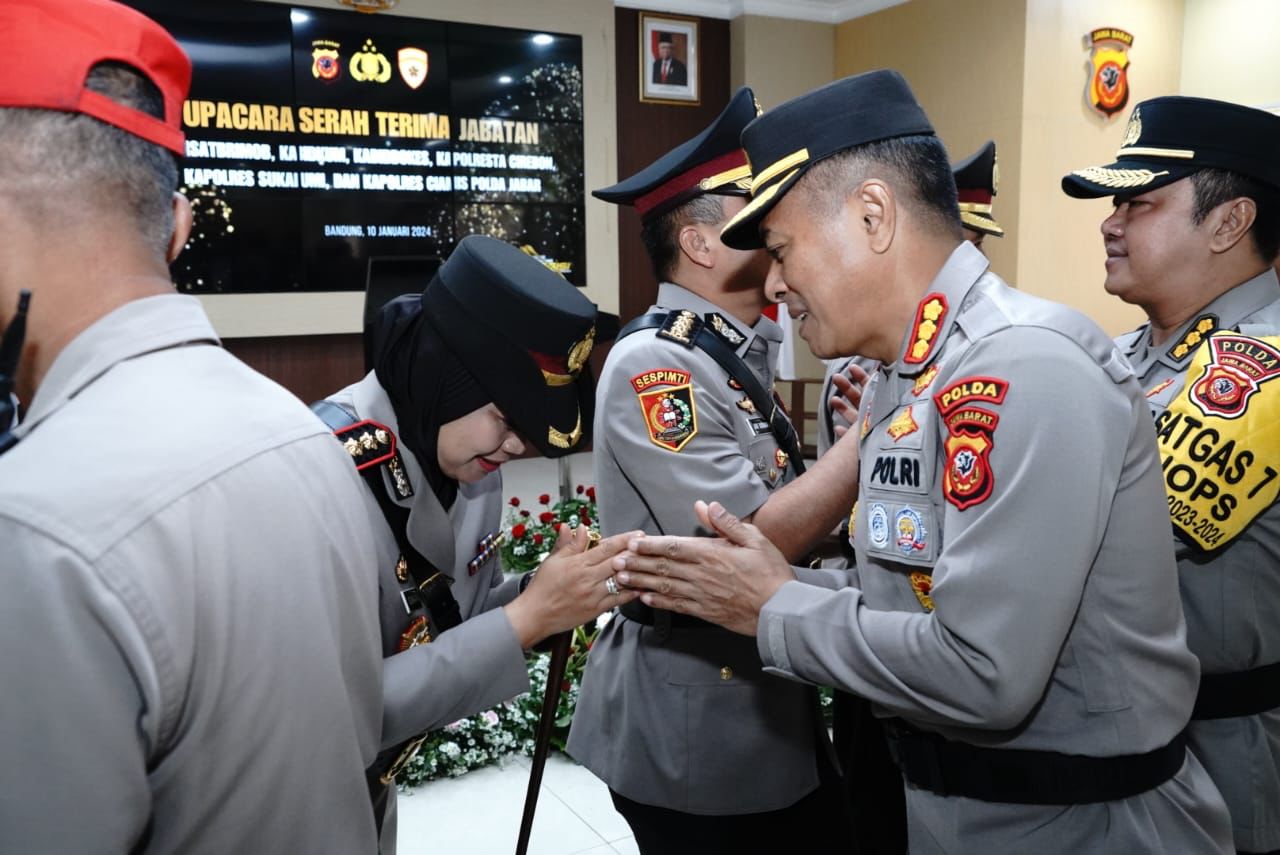 Dalam sambutannya Kapolda Jabar menyampaikan bahwa pergantian pejabat di tubuh Polri merupakan hal yang biasa sebagai penyegaran dan pembinaan karier bagi personel.
