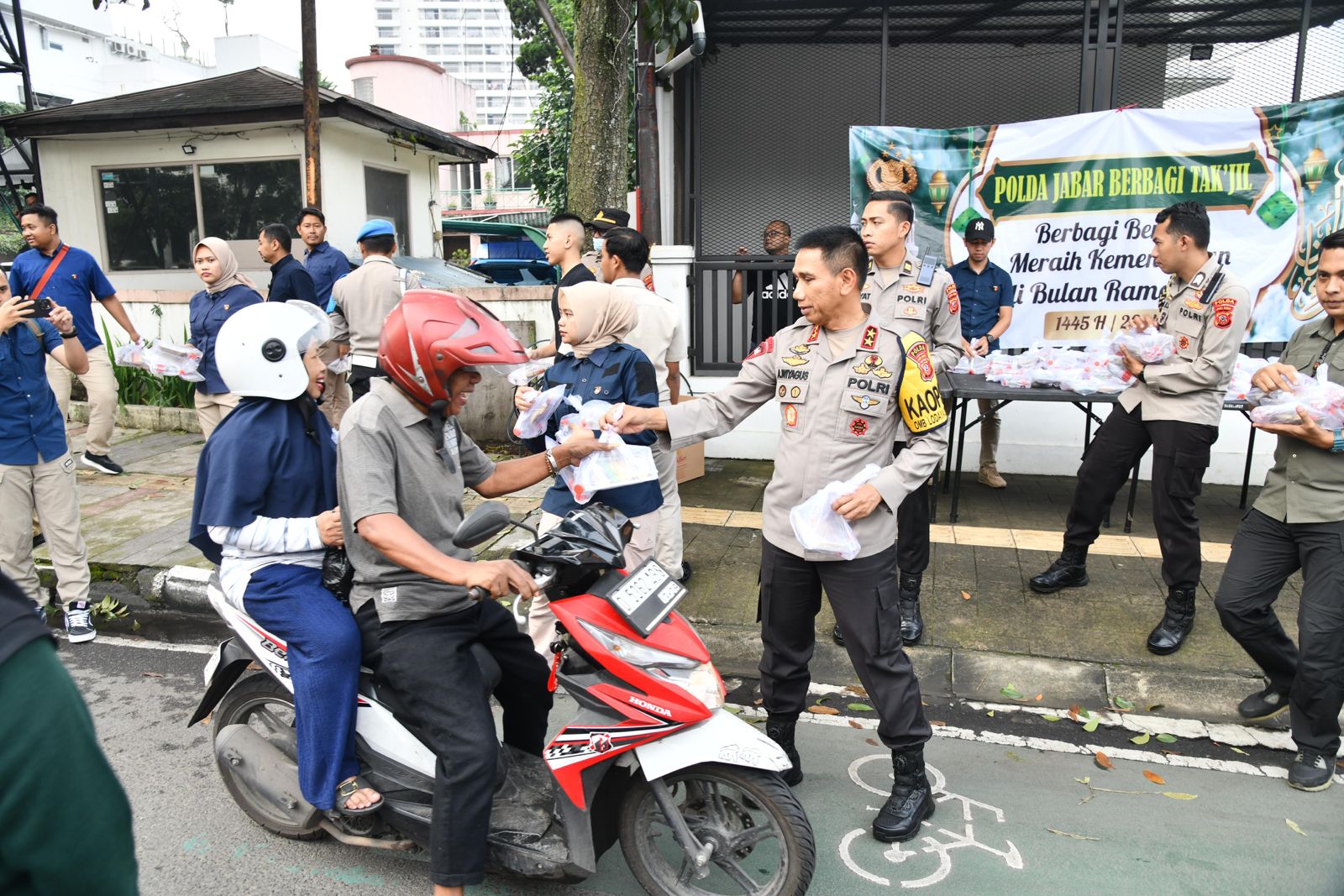 Eksposelensa.com | Kapolda Jabar Irjen Pol. Dr. Akhmad Wiyagus, S.I.K., M.Si., M.M. membagikan tajil di depan rumah Kapolda Jabar, Kota Bandung, Selasa (26/3/2024)