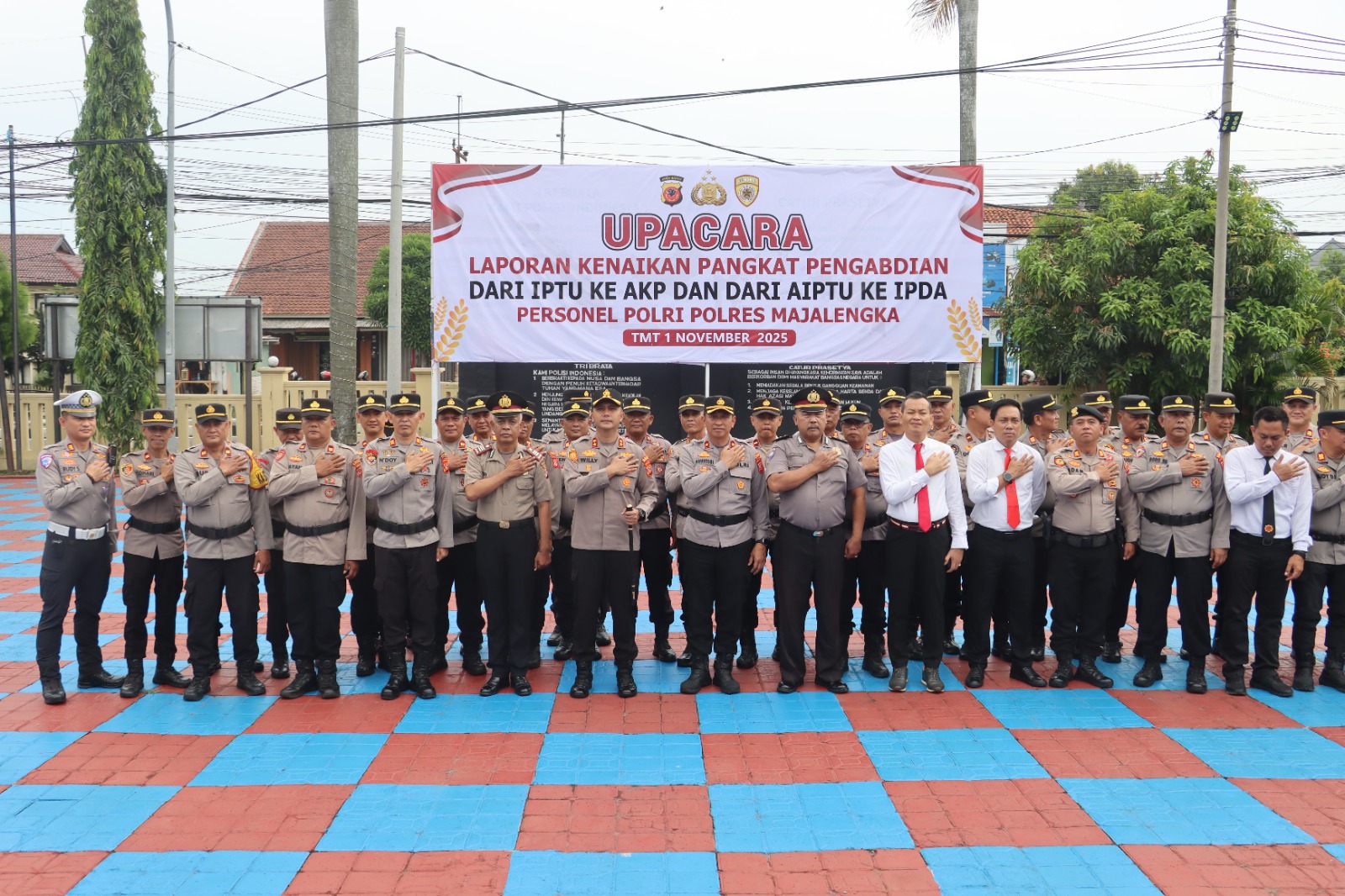 Eksposelensa.com – Majalengka, Suasana penuh khidmat menyelimuti Lapangan Upacara Polres Majalengka saat Kapolres Majalengka AKBP Willy Andrian, S.H., S.I.K., M.H., memimpin langsung upacara laporan kenaikan pangkat pengabdian bagi dua personel Polri, Senin (3/11/2025).