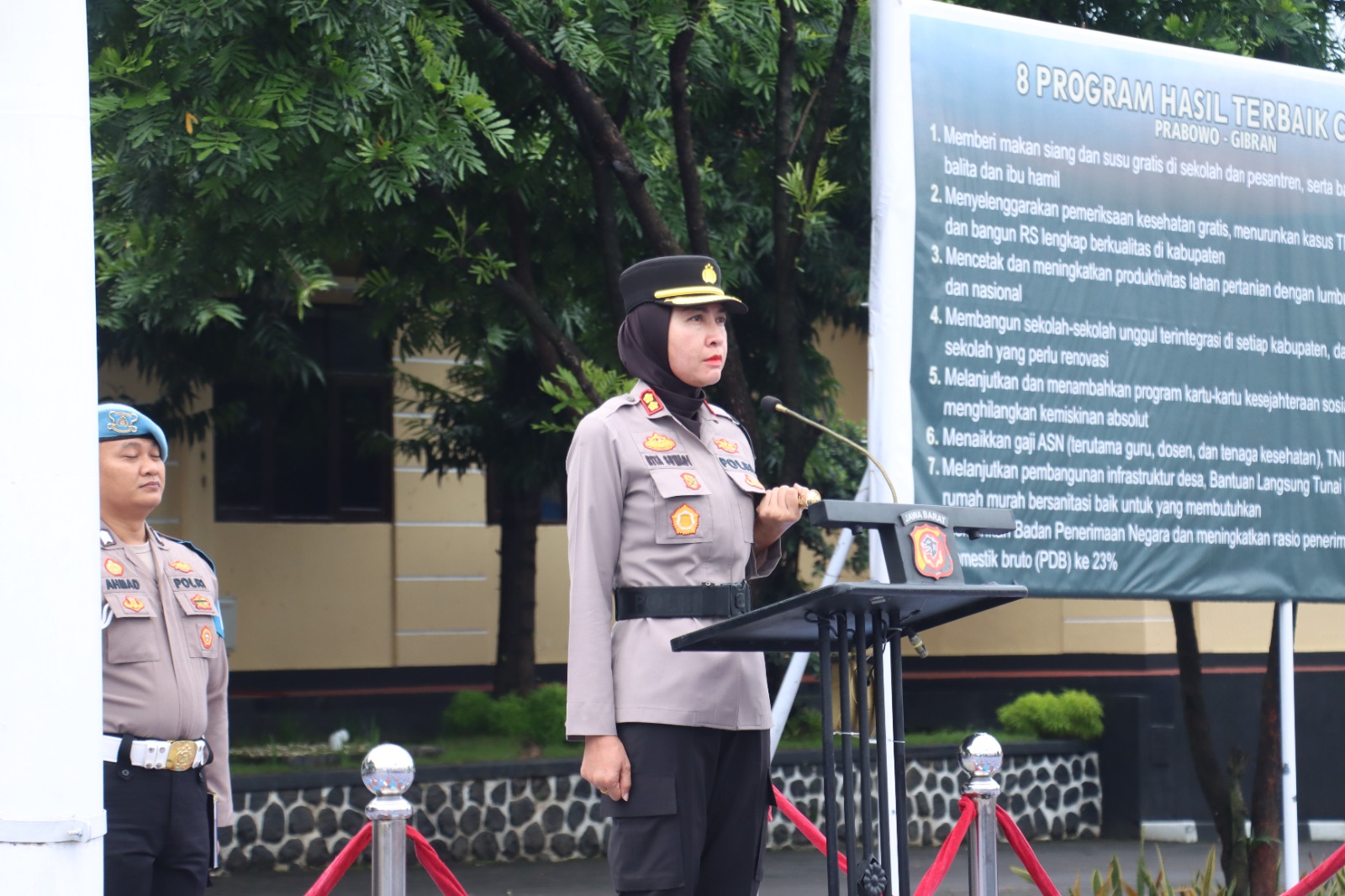 Dalam upacara tersebut, Kapolsek Banjaran Polres Majalengka, AKP Hj. Endang Triastati.,S.I.P., resmi dinaikkan pangkatnya setingkat lebih tinggi menjadi Kompol Hj. Endang Triastati.,S.I.P., sebagai bentuk penghargaan atas dedikasi dan pengabdian selama bertugas di institusi Polri.
